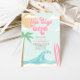 The Big One! Surfing Beach Birthday invite with turquoise waves and pink surf board.