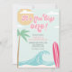 It's The Big One! Surfing Beach Birthday invite with turquoise waves and pink surf board.