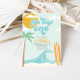 The Big One! Surfing Beach 1st Birthday invite with turquoise waves and orange surf board.