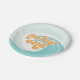 The Big One! Surfing Beach 1st Birthday party plates with turquoise waves and orange writing.