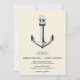 Nautical chic wedding invitation features a vintage style hand drawn anchor illustration in beige colour on navy blue background