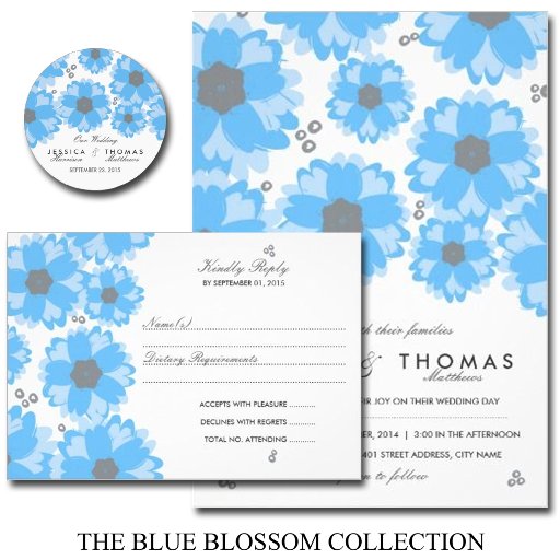 The Blue Blossom Wedding Collection - Favour Stickers Or Invitation Seals.