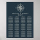 Wedding seating chart matches our The Blue Compass collection, featuring vintage style hand drawn compass illustration in navy blue.framing your guest seating details.