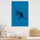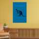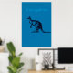 The Blue Kangaroo Modern Wall Art with the image of a Kangaroo in black against a colourful background with the word "Kangaroo". Looks excellent in any modern living room decor.