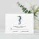 Designed to match our Seahorse & Starfish wedding invitations and accessories this nautical chic wedding RSVP features a vintage style hand drawn seahorse illustration in watercolor sapphire blue