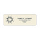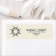 Nautical elegant return address labels in classic navy blue on beige background your return address details aligned at the right and a vintage style hand drawn ship's wheel illustration in navy blue