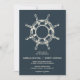 Nautical chic wedding invitation features a vintage style hand drawn ship's wheel illustration in beige colour on navy blue background