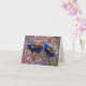 cheery notecard of electric blue shoes walking on pink petals
