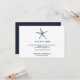 Designed to match our Seahorse & Starfish wedding invitations and accessories this nautical chic wedding Reception Enclosure features a vintage style hand drawn starfish illustration in navy blue.