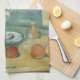 The Blue Vase (Flowers and Fruit) by Paul Cezanne Tea Towel