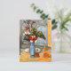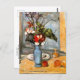 A fine art post-impressionist painting, Blue Vase by the French artist Paul Cézanne, created between 1885 and 1887, depicts a still life with flowers and fruit arranged on a table.