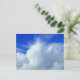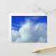 A postcard with an attractive sky photo, cotton wool like clouds against the vivid blue heavens.