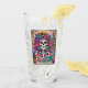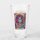 Vibrant, colourful design featuring a funny tarot card with a female skeleton. The skeleton has wild pink hair with flowers in it, a sugar skull face, and is holding an open book. The colourful text reads: "The bookworm". This design is available on a wide variety of products.