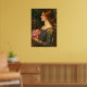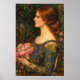 The painting balances romance with restraint. Waterhouse lets texture do much of the storytelling, from the velvety petals to the shimmering fabric of her dress, where greens and blues mingle with earthy golds. The overall mood is tender and contemplative, like a moment suspended between perfume and silence, inviting you to imagine the unspoken thought behind her calm expression.