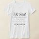 Elegant wedding typography design featuring the phrase “The Bride” in a graceful script font, accented with delicate lines and heart details. A personalized name adds a timeless and romantic touch, making this design perfect for bridal celebrations, bachelorette parties, and wedding-themed gifts.