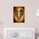 A abstract broken heart on a yellow/orange background with a black colour around with a orange boarder around that. This is a AI generated art.