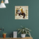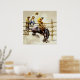 Newell Convers Wyeth was one of America’s early western illustrators. His early trips to the frontier inspired the image of the ‘wild west’. This painting is called “The Bucking Bronco” and depicts a cowboy riding a bucking horse in a western corral with two cowhands watching.