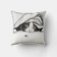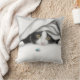 Original fine art design of a curious tuxedo kitten stalking a bug by artist Carolyn McFann of Two Purring Cats Studio printed on a quality American Mojo pillow for cat lovers.
