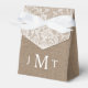 Celebrate in style with these elegant and very trendy wedding favour boxes. The design features a rustic burlap effect background with vintage white lace which is perfect for any country or barn themed marriage celebration. The design is easy to personalise with your own monogram initials and your family and friends will be thrilled when they receive this fabulous favour boxes. Matching items can be found in the collection.