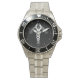 Has heft and feel of expensive stainless steel quartz watches. Good band with safety catch. I removed links, which is easy because engraved arrows show direction to push the linking pins. As always by this seller, the image (a railroad logo) is a perfect reproduction of my emailed image, and is precisely spaced and aligned.