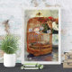 A fine art poster of the painting, The Cage (1885) by Berhe Morisot (1841-1895), a French Impressionist artist and one of "Les Trois Grandes Dames of Impressionism." This painting depicts a wicker Victorian birdcage with two lovebirds inside, with a vase of flowers behind it.