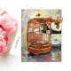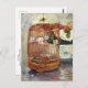 A postcard with the painting, The Cage (1885), by Berthe Morisot (1841-1895), she was a French Impressionist artist. The art critic, Gustave Geffroy, called her les trois grandes dames, the three graces of Impressionism, along with Mary Cassatt and Marie Barcquemond. This painting depicts a wicker bird cage on a table with a ceramic bowl of flowers.