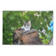 A cat sits in the green garden, next to a log and looks ahead - Two different sides