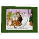 Three cats are sitting on a kitchen counter top letting everyone know they are the ones in charge.