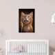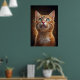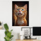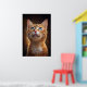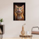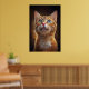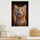 A hypnotic portrait of an orange cat with stunning eyes revealing a universe of dreams. With a magical background and golden particles, this digital art brings an ethereal and charming atmosphere. Perfect for those seeking mystery, cuteness, and sophistication in decor.