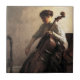 This design features a painting by the American Impressionist artist Joseph DeCamp (1858–1923). It depicts a female cellist as she holds her musical instrument and plays a melody by drawing the bow across the strings. The woman is seated on the edge of a wooden chair as she plays the cello. Her posture is upright but graceful. The cello, which is also known as a violoncello, is a bowed string instrument of the violin family. Its four strings are usually tuned in perfect fifths: from low to high, C, G, D and A. The original artwork was painted by Joseph DeCamp in 1908.
