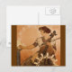 Art Nouveau image of woman holding a cello as the turns a page of sheet music. Fine art by Czech painter Alfons Mucha.
