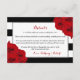 The chic modern luxe wedding collection features a classic black and white stripe background accentuated with beautiful ruby red roses.