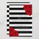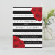 The chic modern luxe wedding collection features a classic black and white stripe background accentuated with beautiful ruby red roses.