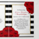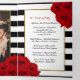 These beautiful programs are perfect for anyone getting married this year. The design features a classic black and white stripe background accentuated with beautiful ruby red roses and a faux gold foil frame. The template wording is easy to personalise and there is also space to include your favourite photo. If you would like to customise the program even more, you can easily do so by clicking on the blue "Click to customise further" link located at the bottom of the "Personalise this template" section.
