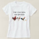 Funny t-shirt design for chicken lovers and farmers featuring watercolor illustration of chickens and a chick with a text that says "the chicken whisperer"