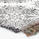 A quality printed throw has its advantages. This is a much finer weave throw than its loopier cousins, and though lighter, it is worth the investment for custom room accessorizing. The back is much prettier than the typical brown, and the fringe on the long sides very vivid, the selvage nicely done. Before photographing, I washed the throw in cold water, delicate, with a thicker woven throw the same size. On tumble dry low, this throw was dry in half the time as the other. This is a very practical quality if you use throws for furniture covers or to wrap up in frequently. The sleekness of the fabric makes it a great layer for accenting or protecting without the feeling of sitting on too much stuff. Perfect for napping or when you feel a light chill coming on. The color printing is beautiful and on this fabric, matched the design and color of my Photoshop image. This is an advantage for blending room fabrics and colors. The fringe on the short sides prints the colors from the design image and therefore varies from the side fringe. I streaked a white fractal line through the plaid pattern to give the illusion of weaving. This printed as crisp as an illusory thread, and put some white in the short side fringe, showing another advantage of print vs loomed- for artistic purposes, line lines, detail, and color integrity can be planned and preserved. My loomed throws have color limitations and more of a needlepoint texture. Print throws reproduce an exact image. The throw felt a little stiff straight out of the package, but this went away in the first delicate wash. Of course I searched the wash water for ink or bleeding and there was none.