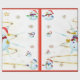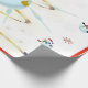 This design features a white and blue snowflake, a golden tree, coloured snowflakes and lots of snowmen dressed for a cold Christmas season. A red border was added. This Christmas wrapping paper is available in assorted styles, colours and sizes.