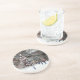 This coaster features a beautiful Christmas tree in the the middle of a field during a snowfall. A festive celebration of the season.