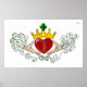 The Claddagh's distinctive design features two hands clasping a heart, and usually surmounted by a crown. The elements of this symbol are often said to correspond to the qualities of love (the heart), friendship (the hands), and loyalty (the crown). Often given in ring form, the Claddagh may be used for friendship, relationship, eternity, engagement, or weddings depending on the intention of wearer and, in the case of a gift, of the giver.