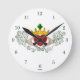 I ordered a small size of Tea Time Green & White Kitchen clock. It's just so cute and matches my kitchen decor!! The picture quality is better than I thought considering most of online orders do not meet buyers' expectations. It weighs only less than a pound. Excellent printing. You are not going to be embarrassed when you give this to your family and friends for a gift. I have failed many times on online orders for poor quality once i received them, but this one surprised me!!