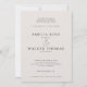 Our classic wedding invitation suite presents an elegant formal invitation on the front, complemented by a complete array of additional details on the reverse side, including reservation information and RSVP instructions. The invitation is adorned in a simple cream and dark grey palette, exuding a timeless elegance suitable for any matrimonial ceremony.