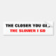 THE CLOSER YOU GET, THE SLOWER I GO BUMPER STICKER