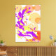 Here's a very unique and colourful abstract design to build your home or office decor around. It features our abstract interpretation of "the conversation" featuring two abstract figures and colourful swatches and circles of orange, yellow, purple, and white both making up the figures and serving as the background. Very cool and stylish stretched canvas print design - measures 24"x36".