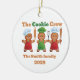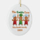 The ornament features a design of three gingerbread chefs, perfect for. adding a festive touch to your Christmas tree. It brings a cosy and whimsical vibe, ideal for those who love holiday baking and decorating. This ornament is perfect for Christmas enthusiasts looking to add unique decorations to their holiday collection.