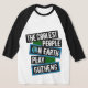 I bought the Men's Basic 3/4 Sleeve Raglan T-Shirt, White/Navy. It arrived on time for a gift and is of a great quality and fits perfectly! So cute! Zazzle has done it again! The printing was clear and filled in solidly.