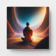 Beautiful and serene seated Buddha monk in a cosmic landscape.  Tabletop art plaque design created using AI generating software.