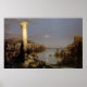 This is a reproduction of the fifth of Thomas Cole's five part series, “The Course of Empire". This fifth painting, "Desolation" depicts a landscape in which the capital of empire lies desolated in the aftermath of its violent destruction. As daylight fades, the landscape is shown in the process of returning to wilderness. Ruins lie broken in the vegetation as a pale moon rises over the sea. The boulder-topped mountain is still visible from the earlier paintings and the moonrise provides a juxtaposition to the rising sun of the first painting. The original canvas is 63.5 inches wide and 39.5 inches high and is in the New York Historical Society.