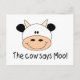 Our The Cow Says Moo Design is guaranteed to get a huge giggle out of your little darling. Cute gift for the baby or toddler that loves farm animals and is just learning the sounds all animals make! Available on bodysuits, tees, long sleeve tees, mugs cards, magnets, stickers, buttons, keychains, tote bags and more! Great New baby gift or A baby shower gift