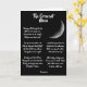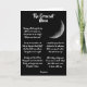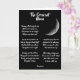 This card has a crescent moon against a black background, and a cute poem by Amy Lowell (1874-19250), an American poet: Slipping softly through the sky Little horned, happy moon, Can you hear me up so high? Will you come down soon? On my nursery window-sill Will you stay your steady flight? And then float away with me Through the summer night? Brushing over tops of trees, Playing hide and seek with stars, Peeping up through shiny clouds At Jupiter or Mars. I shall fill my lap with roses Gathered in the milky way, All to carry home to mother. Oh! what will she say! Little rocking, sailing moon, Do you hear me shout - Ahoy! Just a little nearer, moon, To please a little boy.