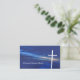 A simple, yet colorful and striking design on this business card for a church or other Christian organization. The design features a colorful, mostly blue, evening sky that displays a white cross. The church name is in white on the front. All other information is on the back of the card. All text is easily changed by using the template. For other desired changes (different type fonts, color, size or placement) select "Personalize this template" then select "Edit using Design Tool."